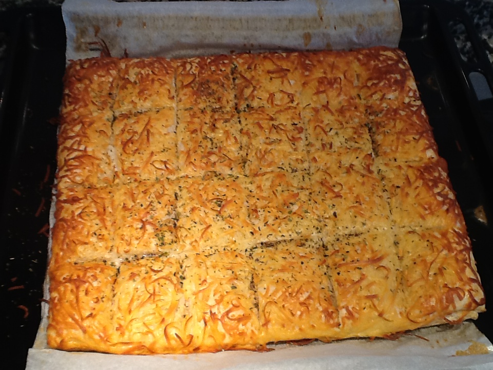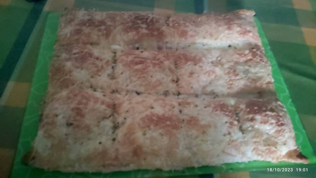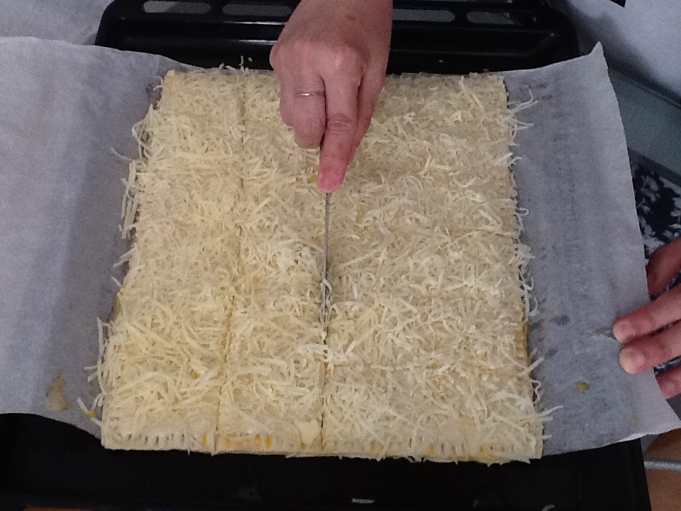 Marcamos con un cuchillo sin llegar a partir del todo. En cuadrados a vuestro gusto, para cuando este cocida sea más fácil trocear la masa.
