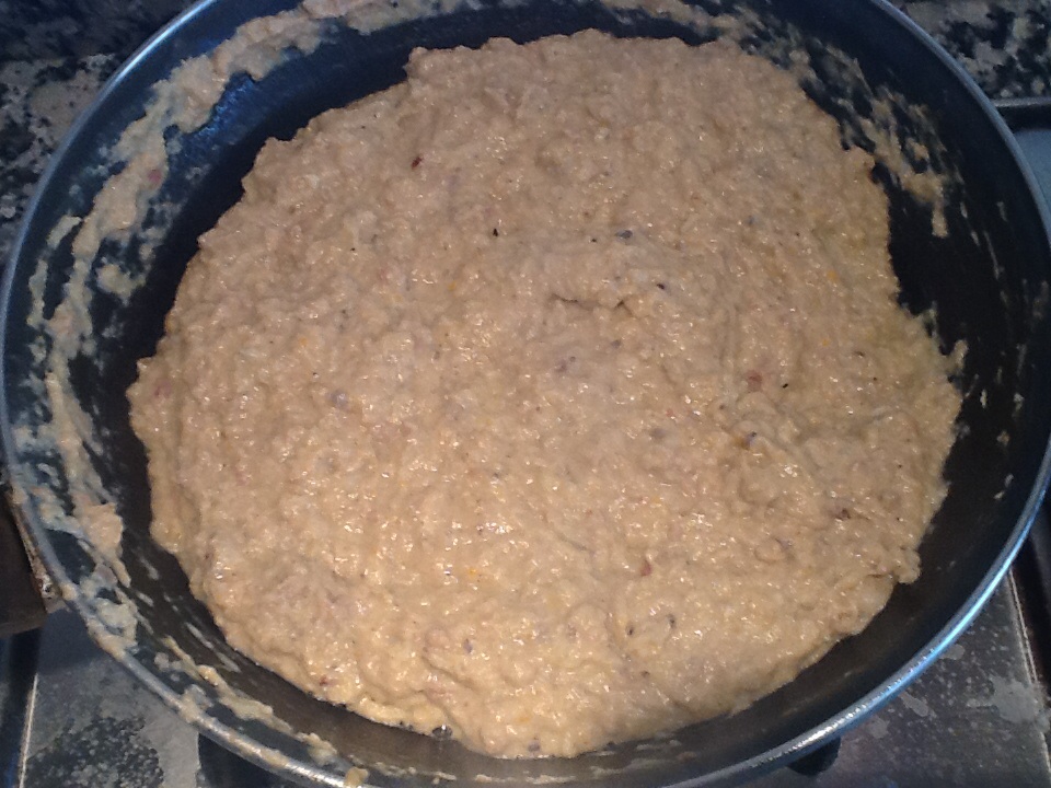 Ir añadiendo leche poco a poco (aprox. un vaso mediano) sin parar de remover. Rectificar de sal. La masa no tiene que quedar liquida, se ira espesando.