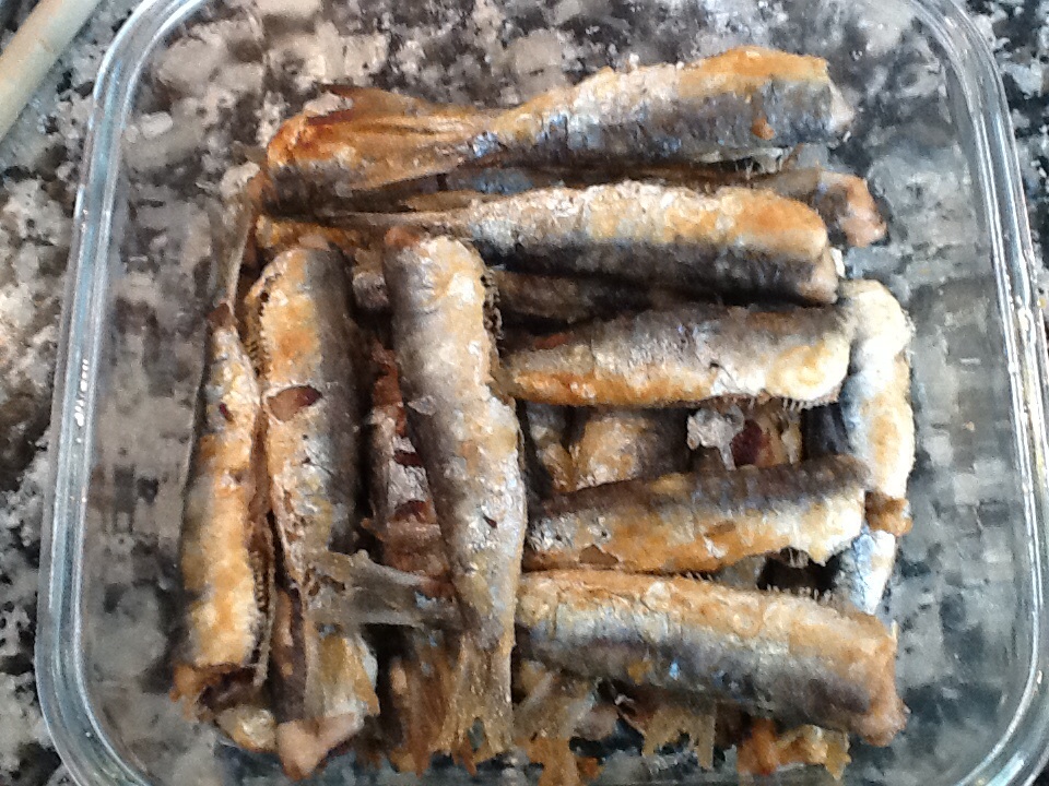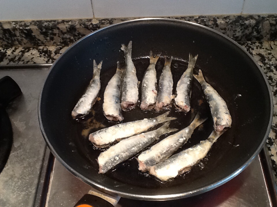 Añadir un vasito de aceite nuevo al aceite de freir las sardinas si fuera necesario.