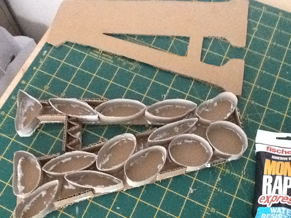 Saqué el patrón en cartón dos veces e hice el montaje con la técnica de papel maché.