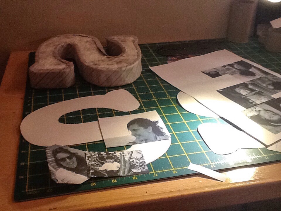 Empecé buscando ideas por el maravilloso mundo de Pinterest. Encontré como hacer unas letras de cartón y pensé en forrarla de fotos de momentos vividos por ella. Y me puse a idearla.