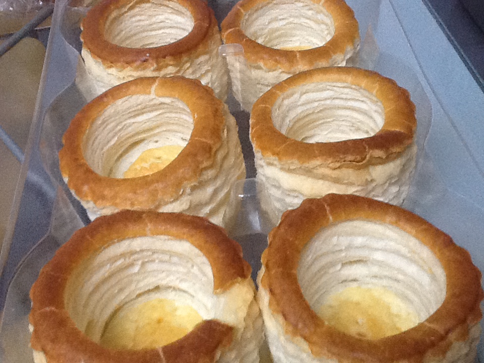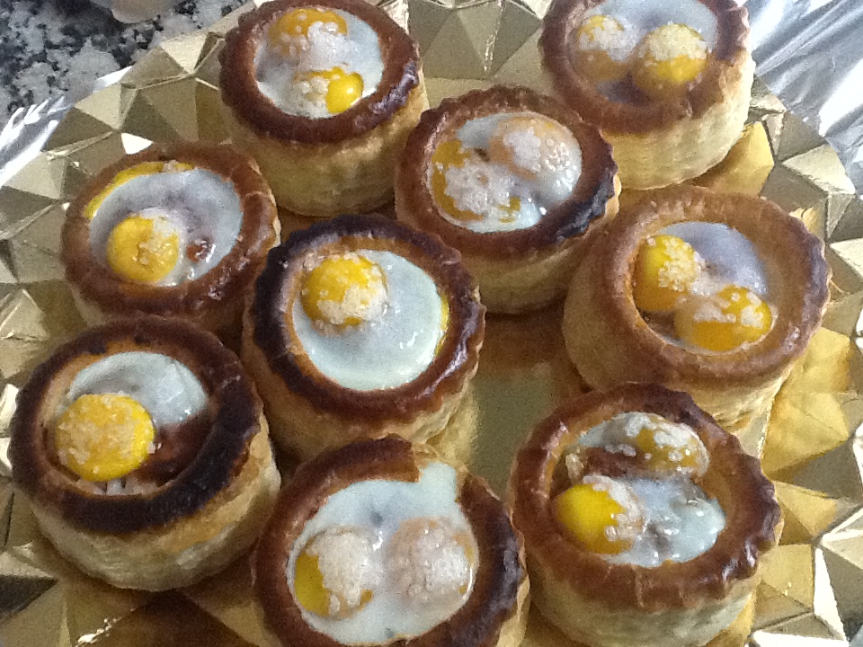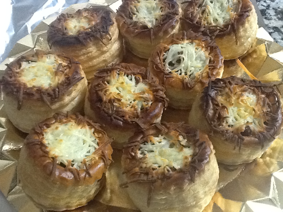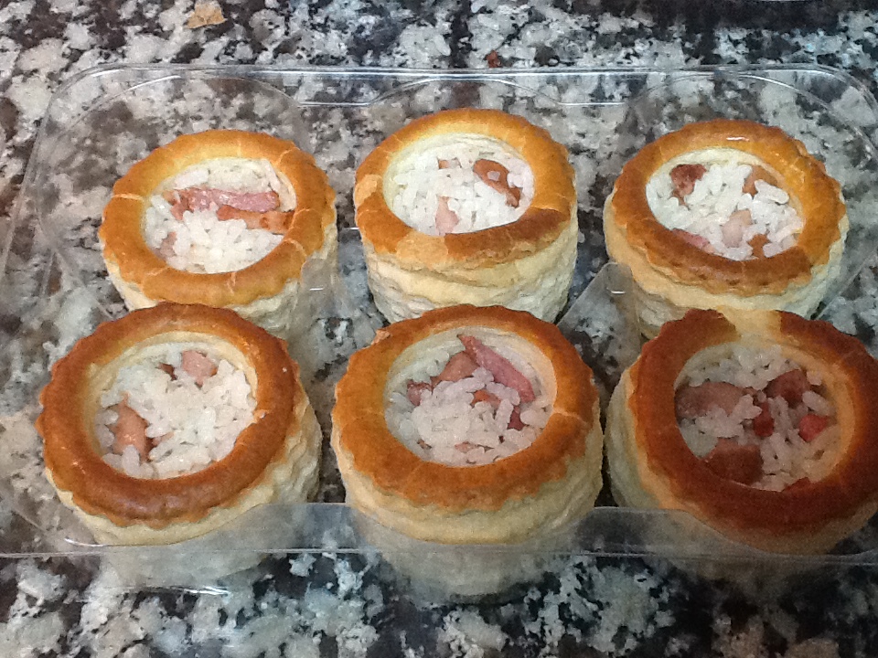 Mi hijo tenía que llevar un plato para la cena de fin de año. Había de ser fácil, sin grandes complicaciones. Cada uno de sus jóvenes amigos llevarían un plato ( tortillas, pollo rustido, ensaladas, tarta de manzana ….) y le di la idea de los volovanes (cestas de hojaldre) rellenos de carne y arroz.