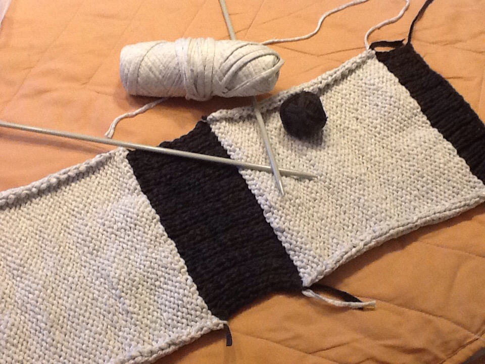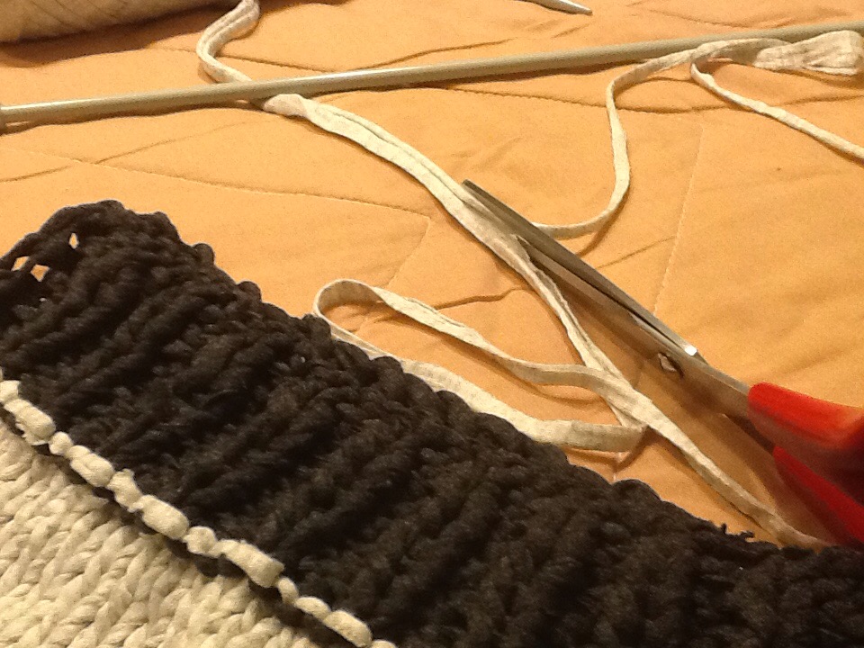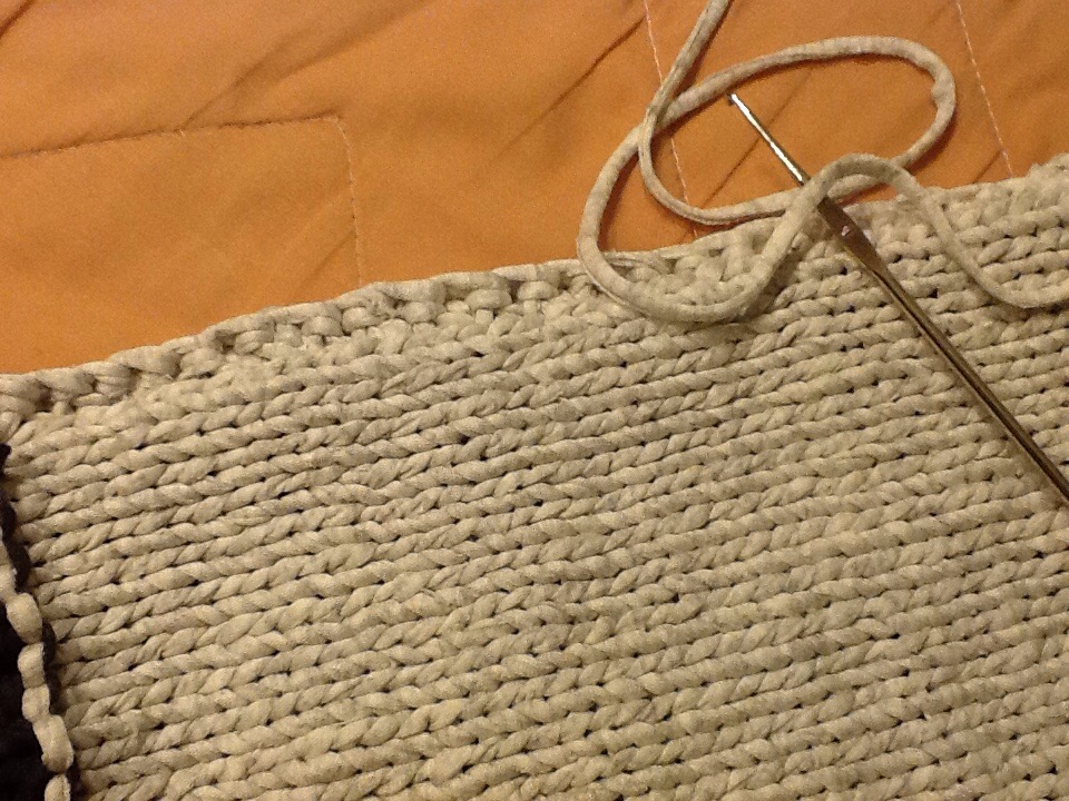 Como no quería que quedara muy gruesa fuí cortando el trapillo por la mitad para eliminar volumen al trabajo.