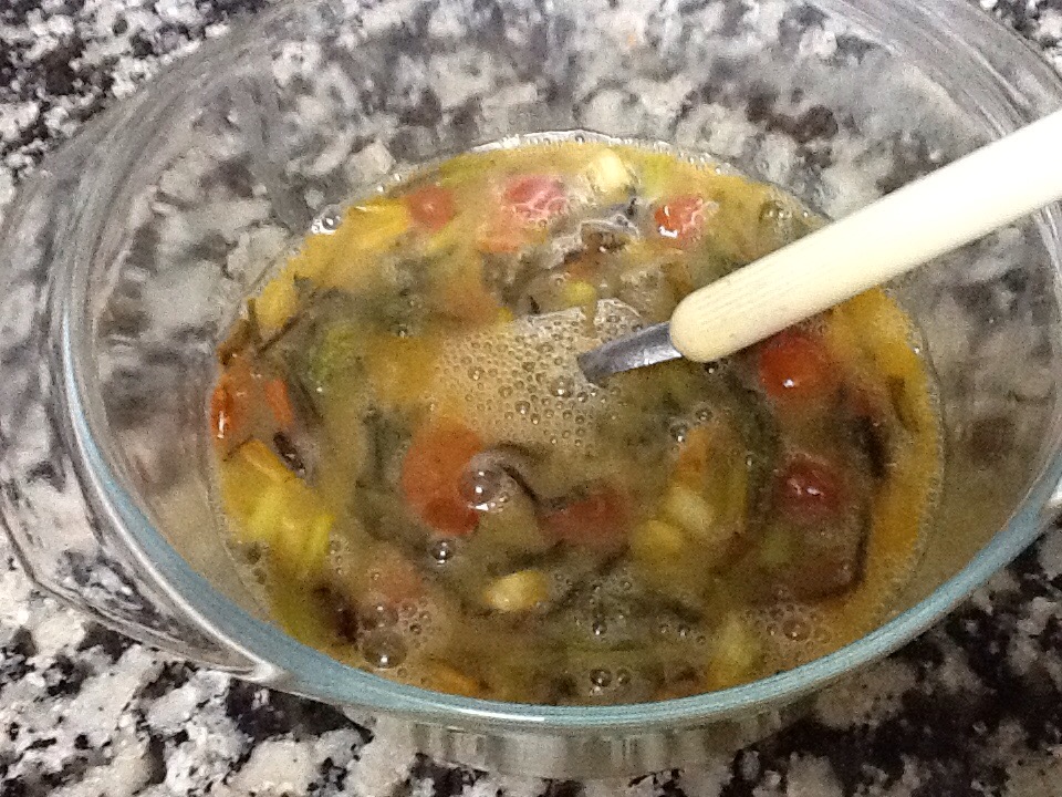 -Mientras, bato cuatro huevos , salo y le añado la mezcla al bol.