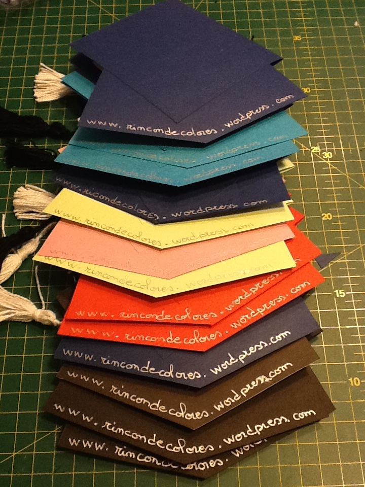 Para el modelo me inspiré en imágenes de google y elegí cartulina de varios colores. No quise que fueran solo negros sino de colorines para jugar con mi Rincón de colores, jajaja.