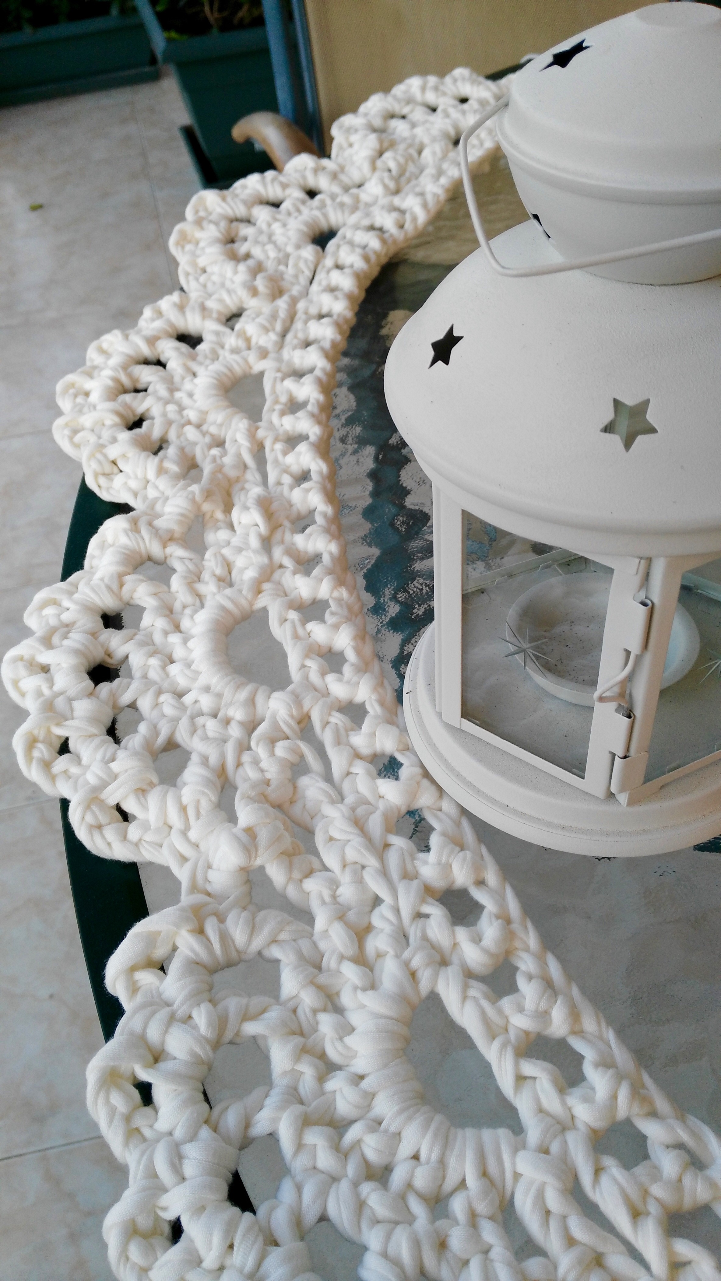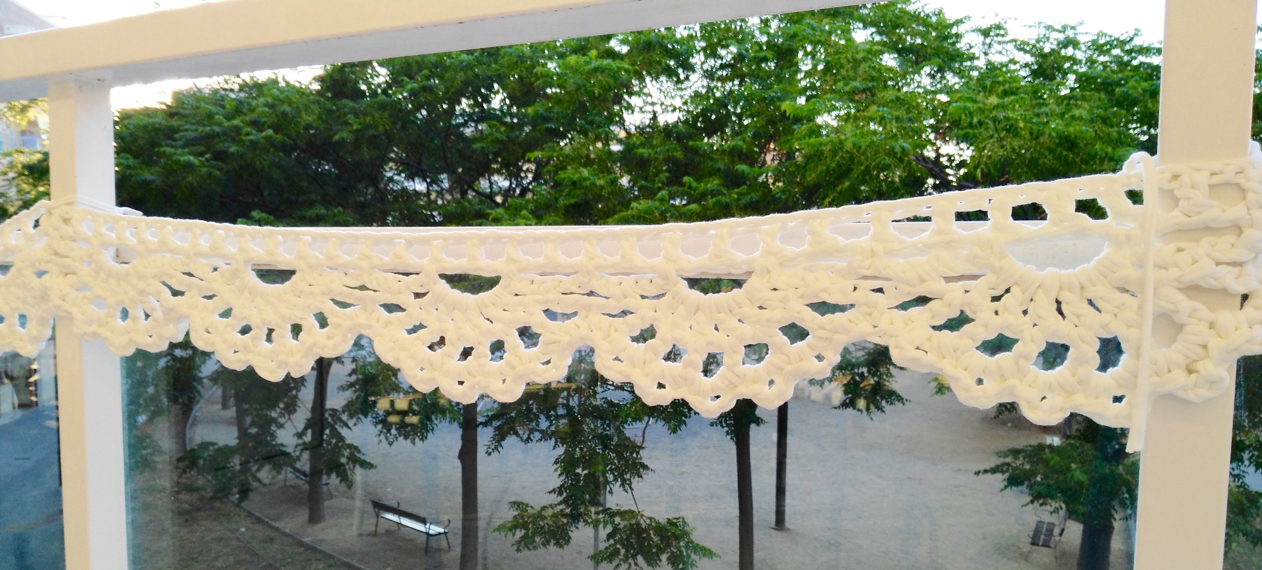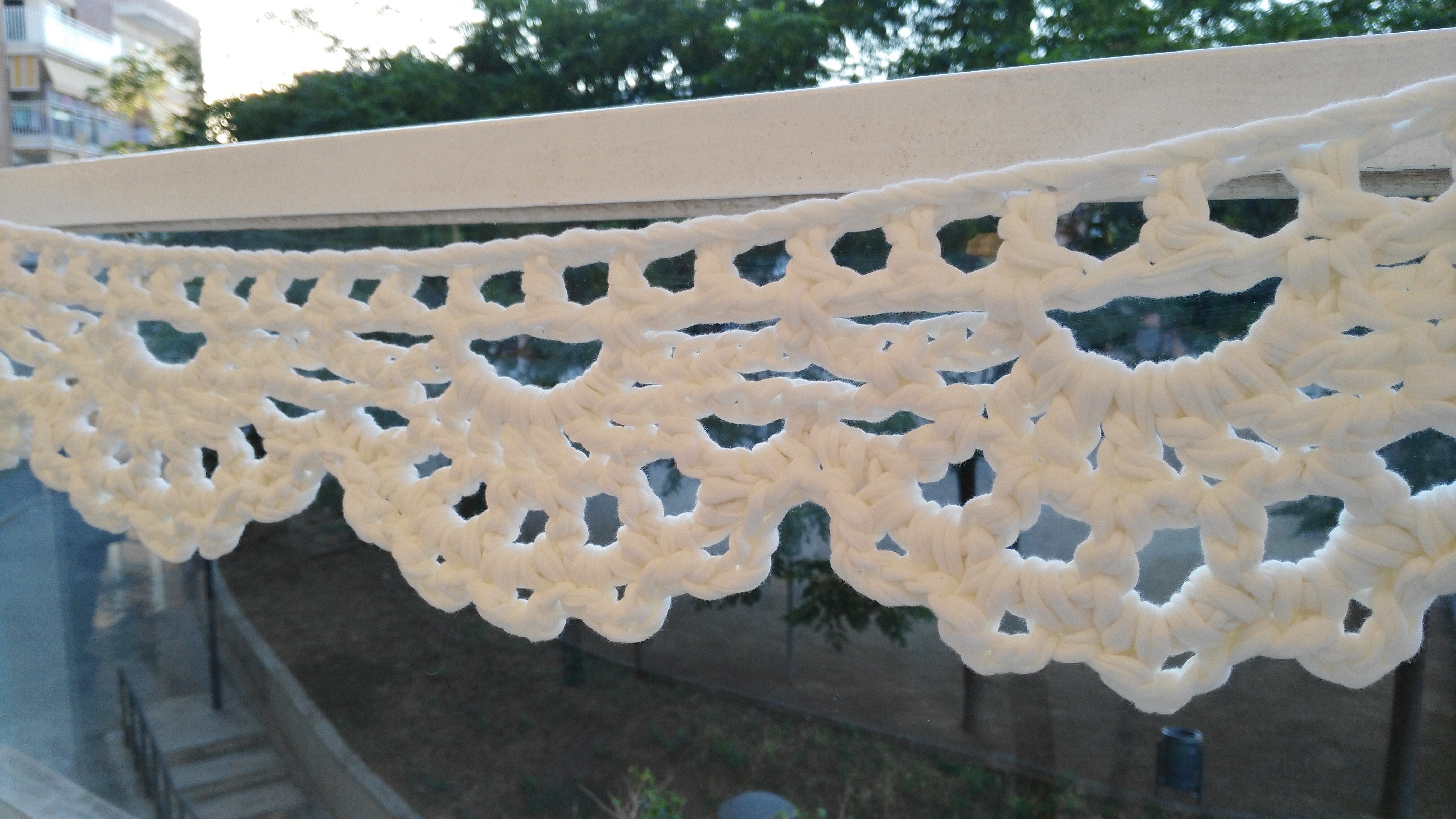 Este año la he adornado con una puntilla realizada con trapillo blanco.