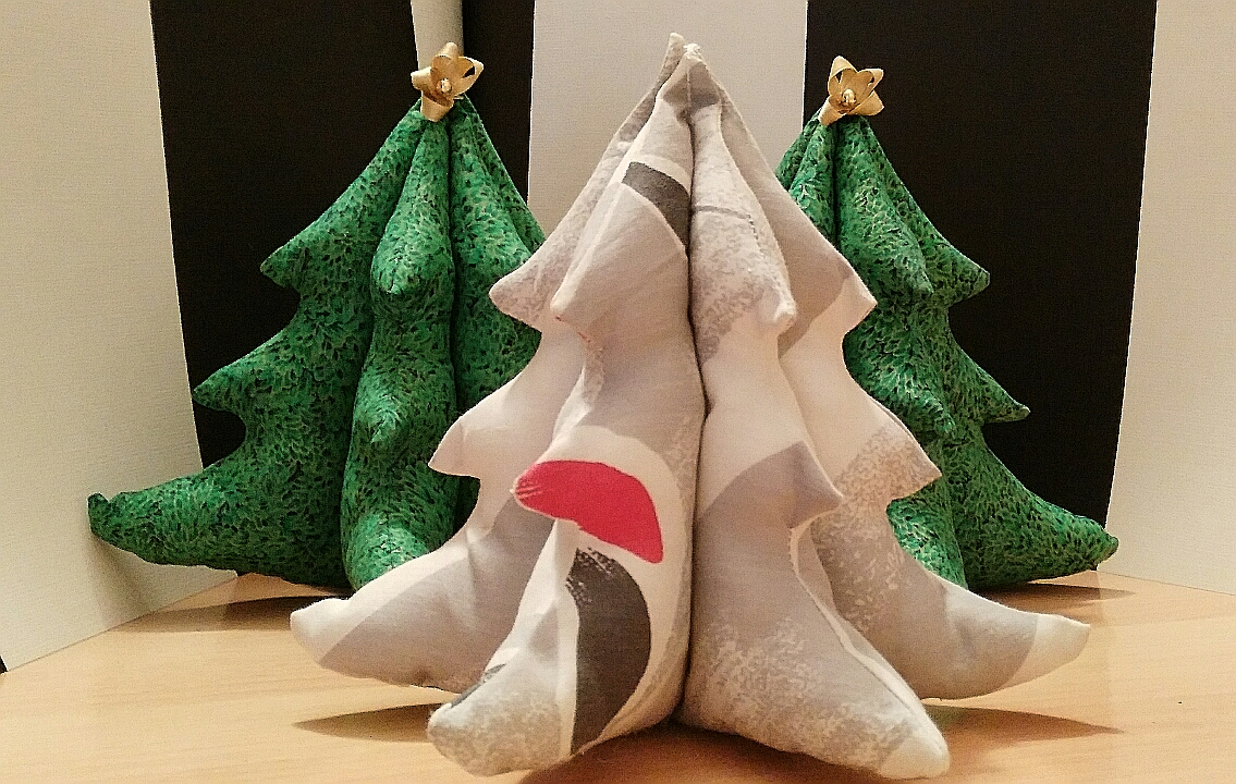 Son arbolitos de tela, con una medida de unos 20 cm. aprox. no son nada aparatosos y quedan bien en cualquier rinconcito.