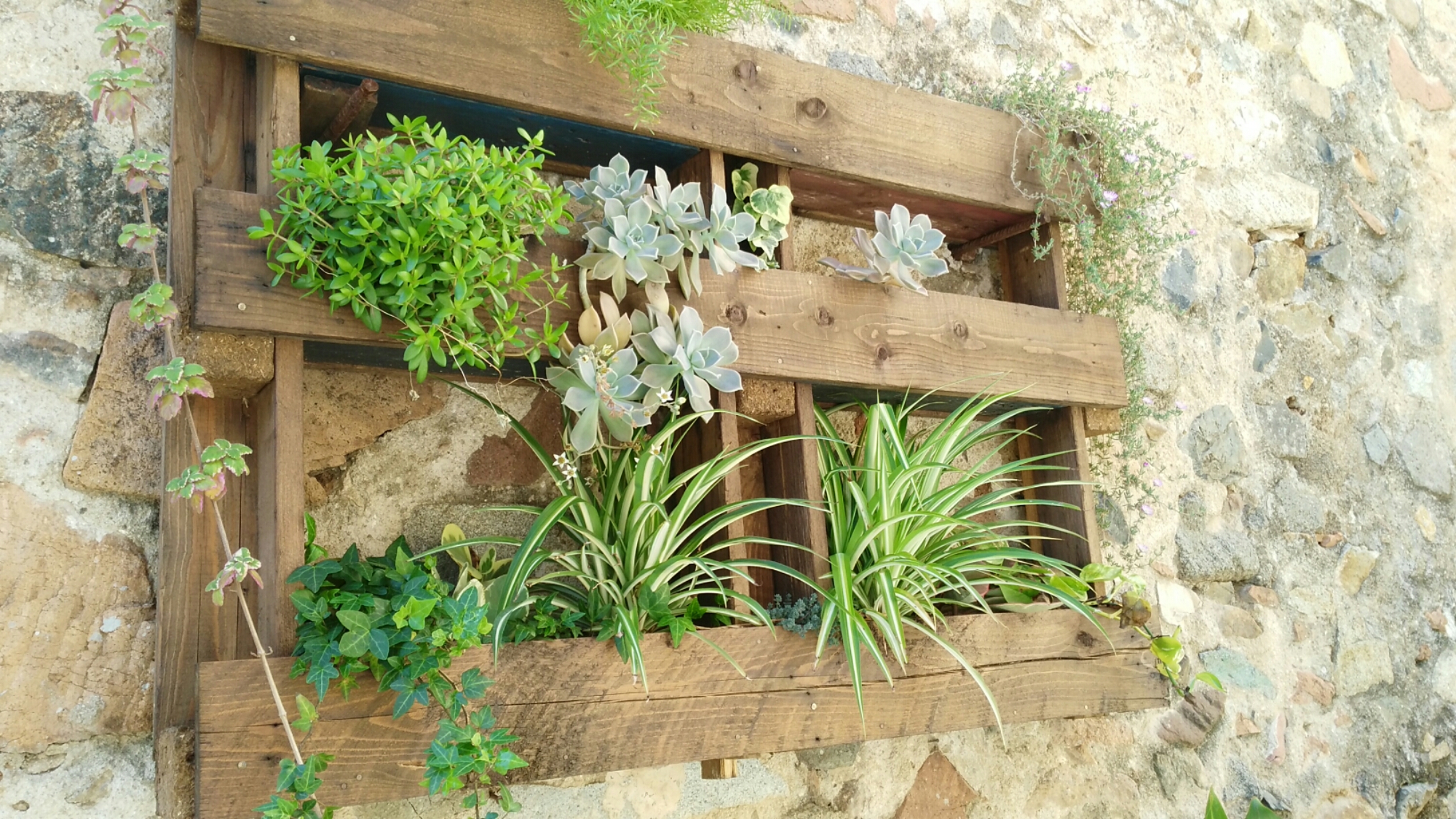 A la entrada del pueblo nos encontramos con un bonito Jardín Vertical realizado con un palet.