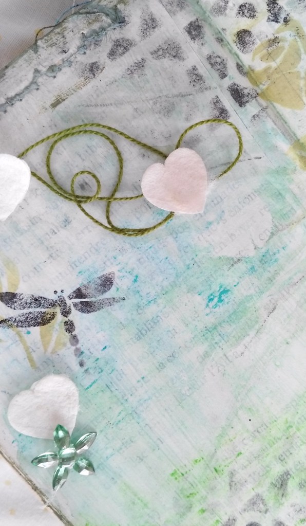 Primero puse gesso a las páginas y las he pintado con ceras acuarelables.