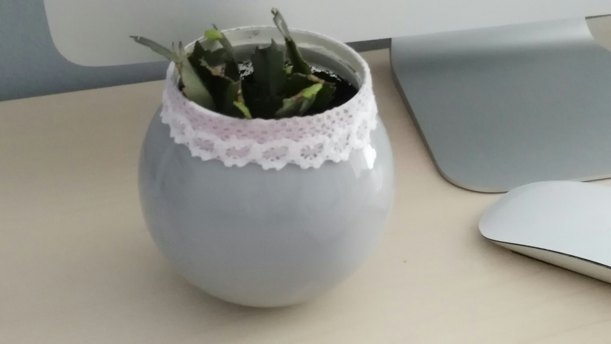 He puesto en agua unos trozos de una planta que ya tengo y cuando le han empezado a salir unas raíces muy finitas ya están listas para ser plantadas en esta maceta reciclada.