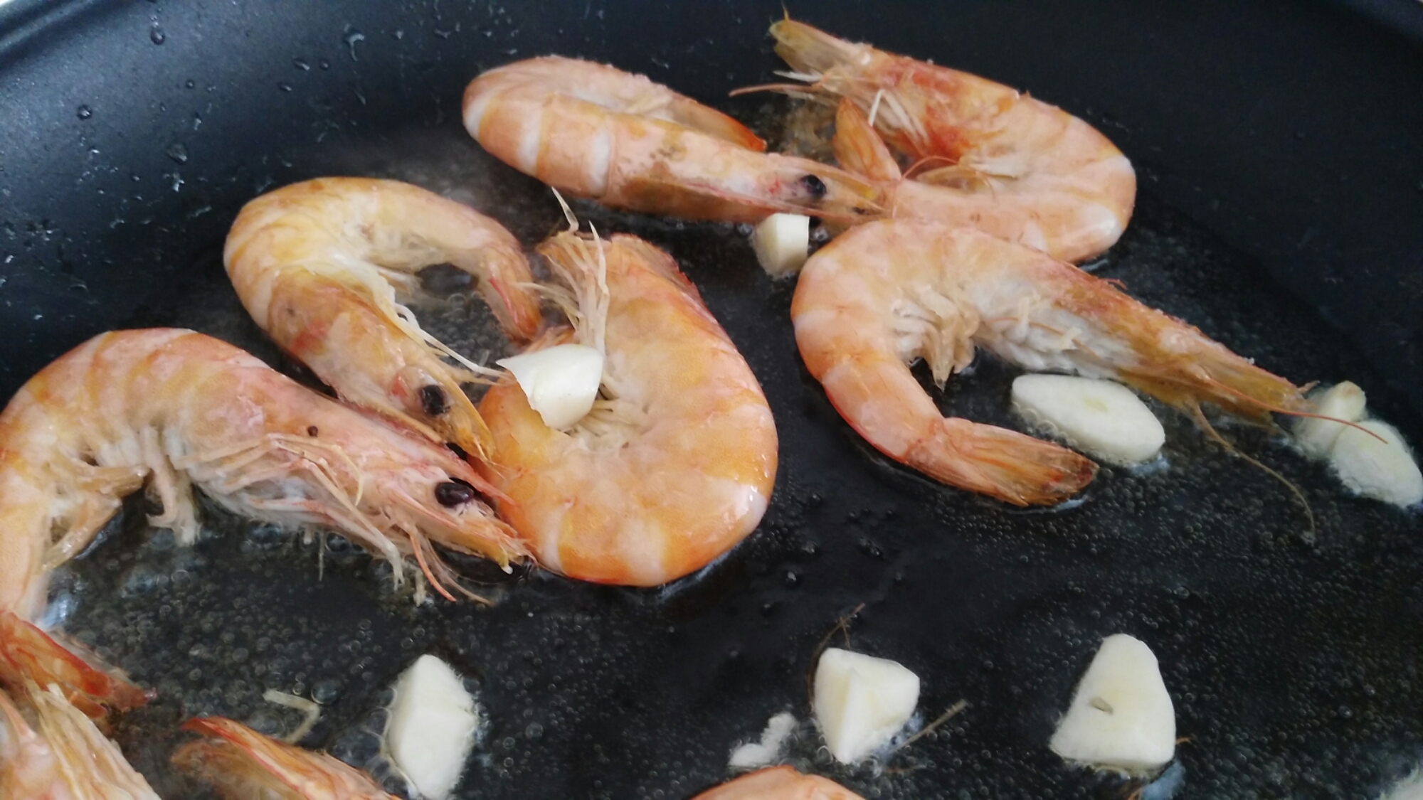 Rectificar de sal y añadir un poco de pimienta. Deja cocer unos 6 minutos. Coloca los langostinos y a fuego suave déjalo 2 minutos más aprox. Tienen que quedar secos. En total en 8 minutos listos.