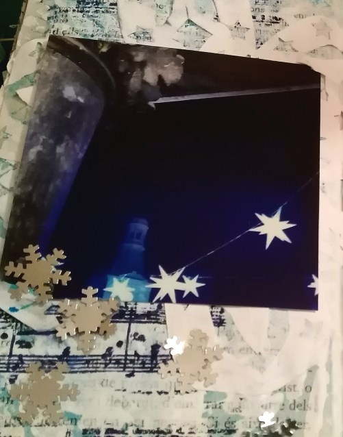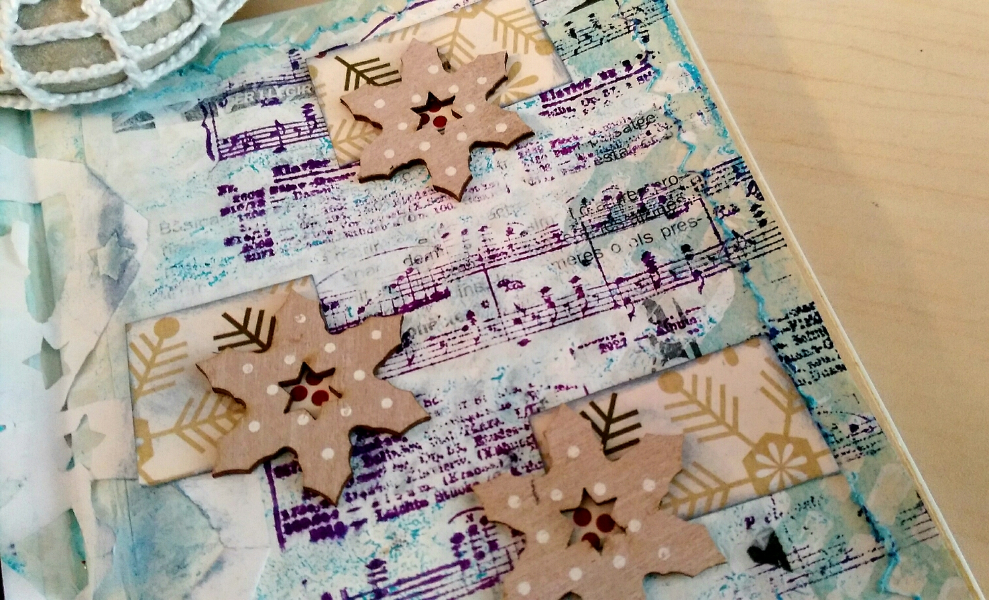 He creado unos detalles con estrellas de nieve, unas de madera y otras plateadas. Sin duda alguna me ha quedado una página «frozen», con mucho copito de nieve. jejeje.