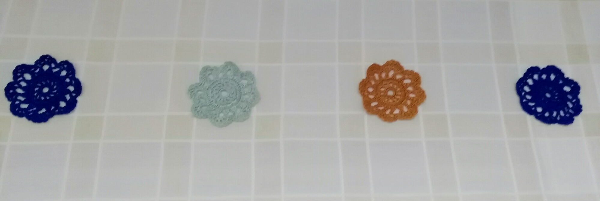 Rebusqué por pinterest y encontré este patrón de medallón que realicé en varios colores a juego con los tonos de mi cocina. (No encontré el enlace)