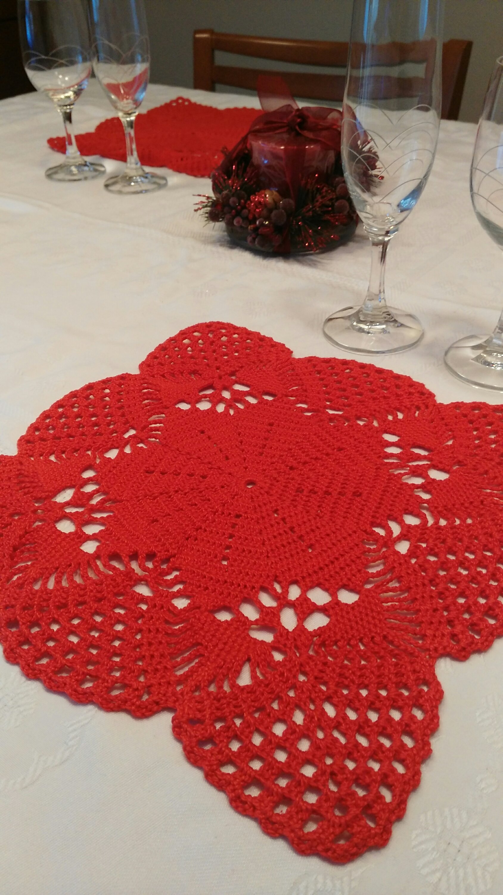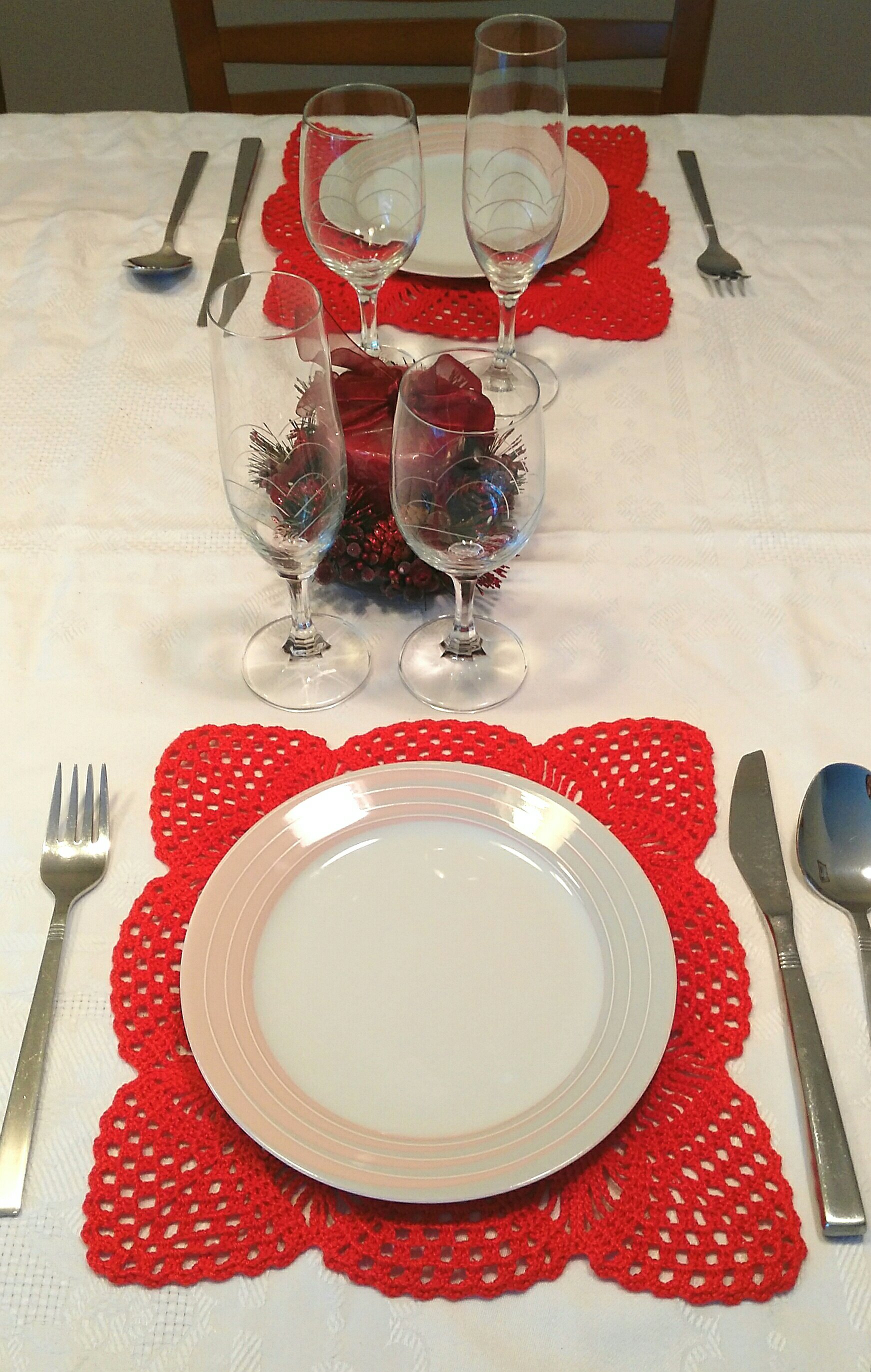 Pues hoy os muestro unos tapetes individuales que he realizado en color rojo, pero tu puedes emplear diferentes tonalidades dependiendo como quieras decorar tu mesa.