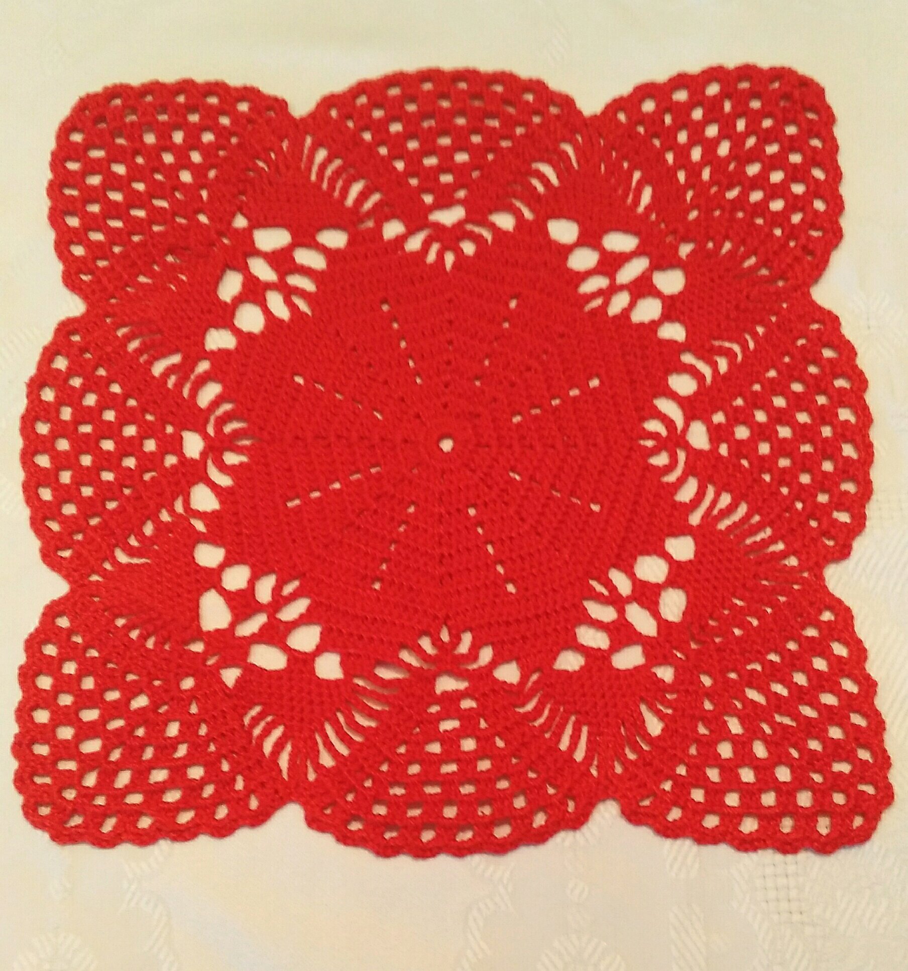 Las medidas son 27cm x 27cm y lo realicé con hijo de algodón del nº 8 .