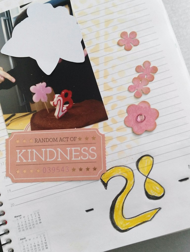Conforme voy creando las páginas, arranco las que sobran en blanco y dejo un par para unirlas con pegamento. He ido trabajando más o menos sobre los días y los meses que se han producido esos momentos que he querido guardar.