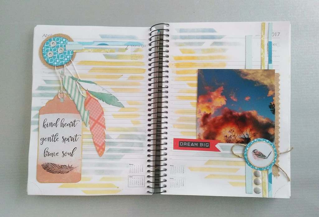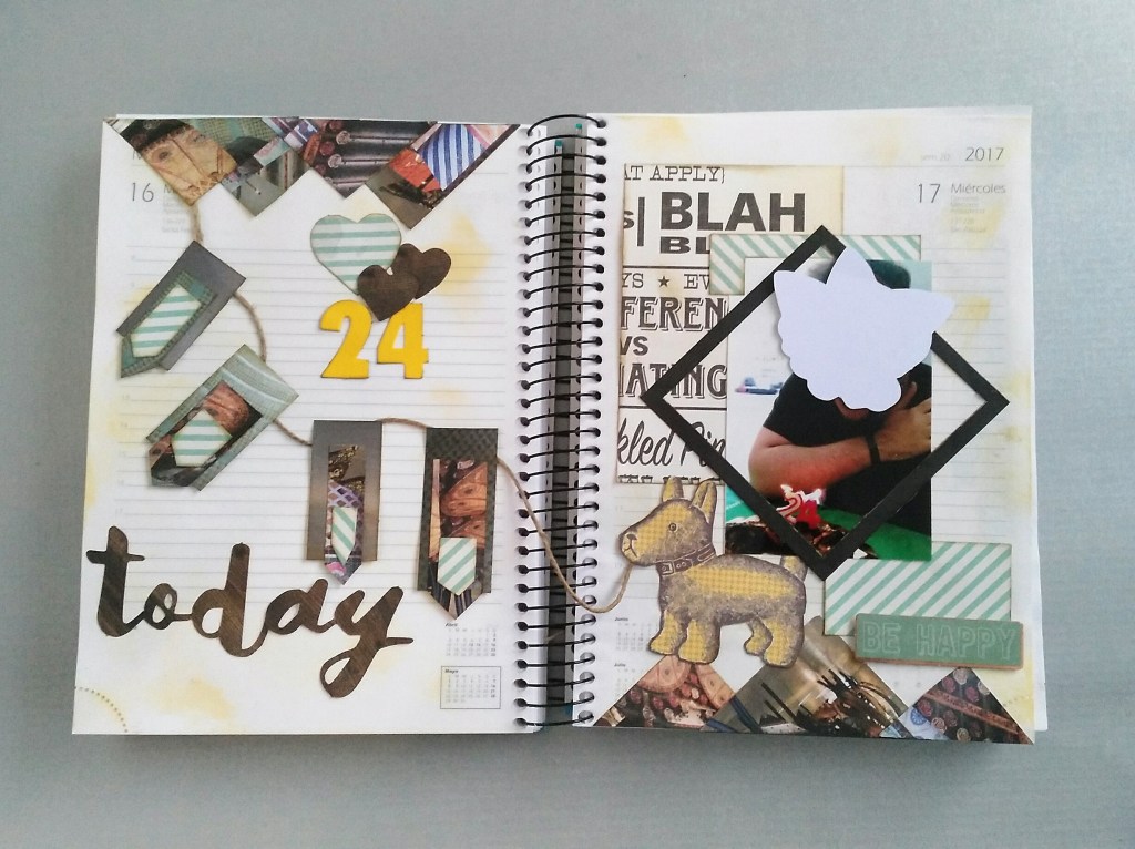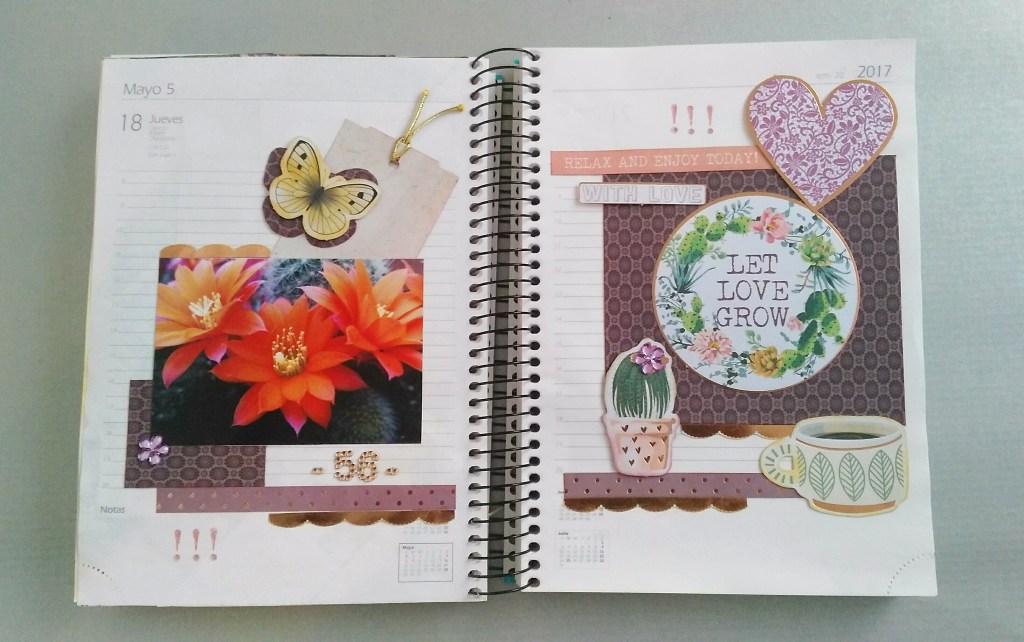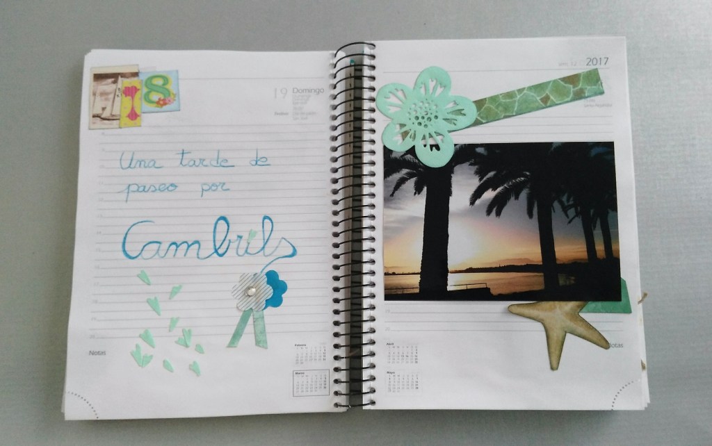 Aprovechando una agenda del 2017 voy a realizar un diario creativo. Me encanta guardar todo tipo de recuerdos … invitaciones, entradas …. papelitos …. y he pensado guardarlo junto con fotos de esos momentos bonitos … o tontos …. (esas fotos de Wassaps que me manda mi familia, jajaja ..) lo que me guste. Voy a guardarlo y te voy a mostrar la primera parte de este diario creativo Scrap/Art Journal.