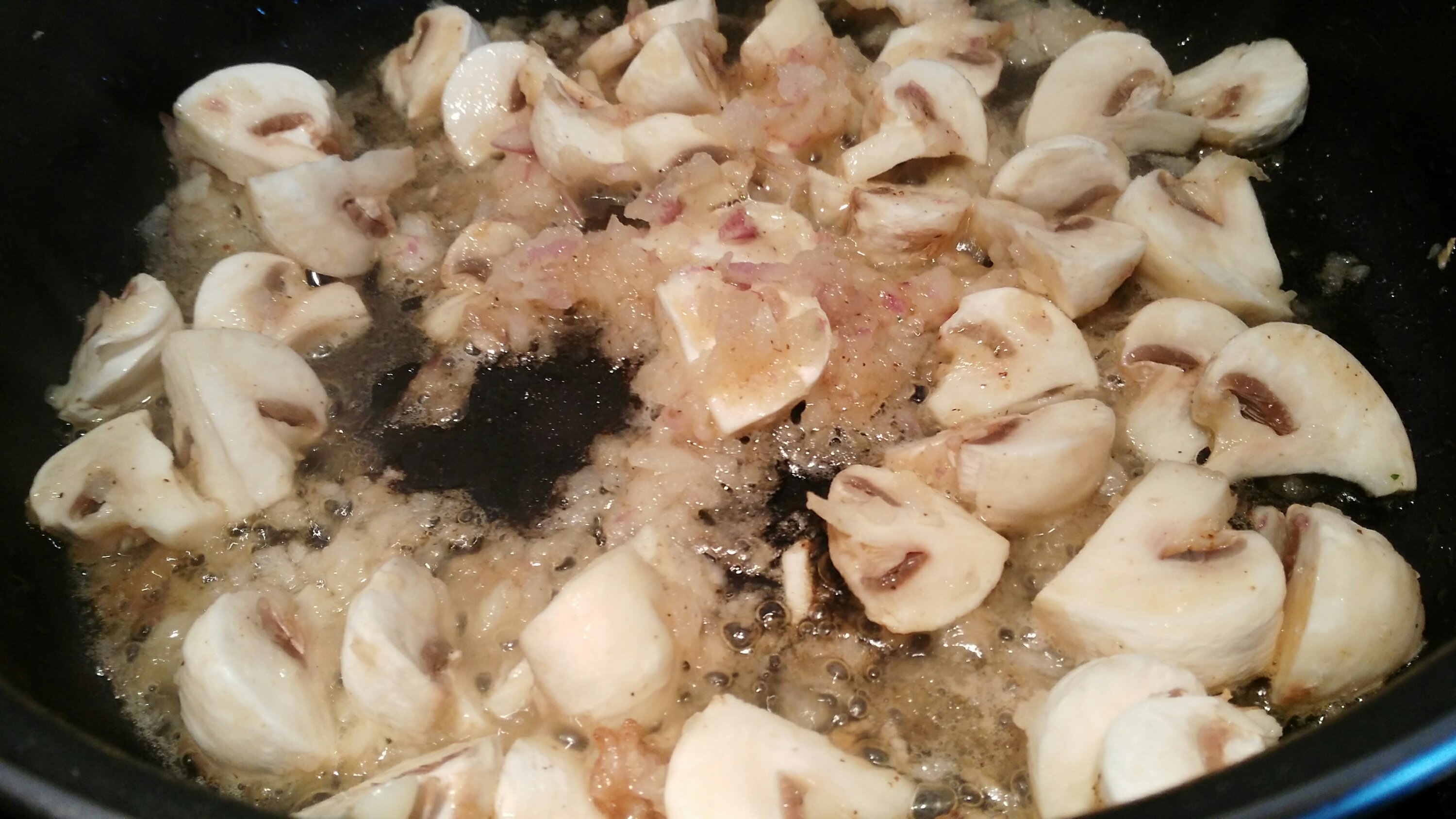 Sofríe la cebolla y las setas.
