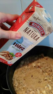 - Caldo de verduras y bebida de nueces (de Borges) (puedes sustituirla por leche o bebida de soja) para la bechamel.