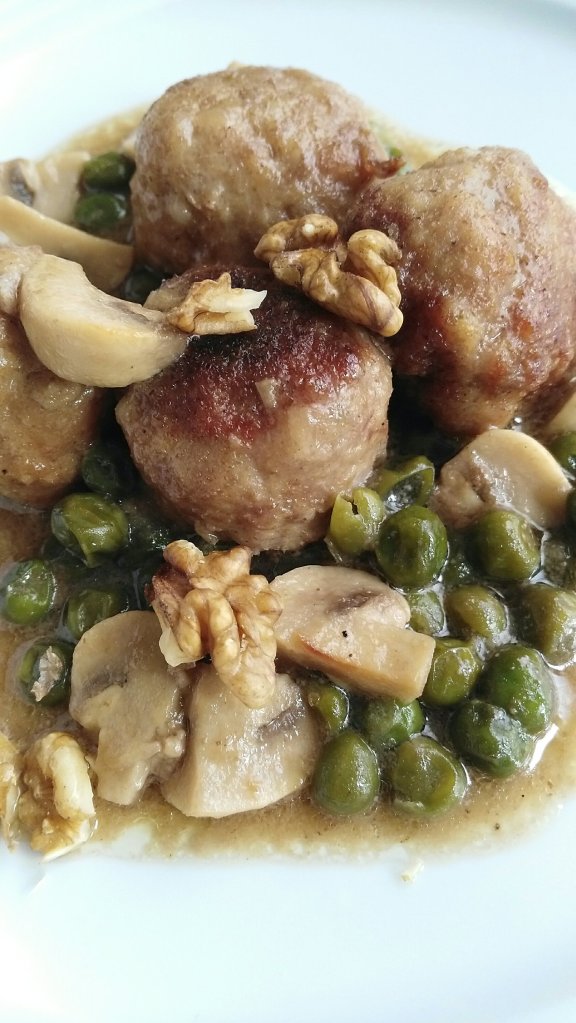 - Champiñones, guisantes, nueces, sal, ajo y perejil.