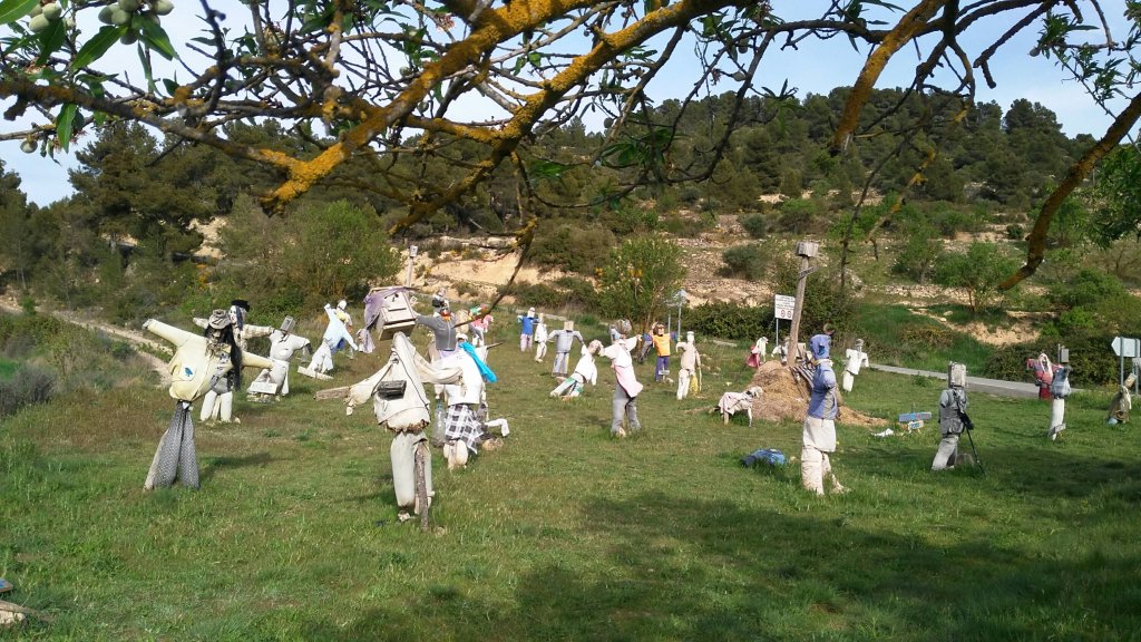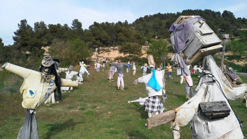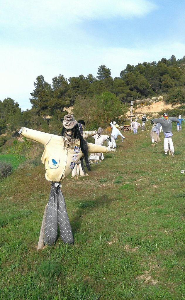 Y ya de vuelta a casa nos paramos a fotografiar un rinconcito que han creado cerca del pueblo de Vallbona dedicado a «Los quierepájaros» espantapájaros. Una colección de figuras realizadas con material reciclado que sirve como observatorio y nidos de lechuza.