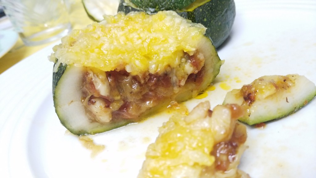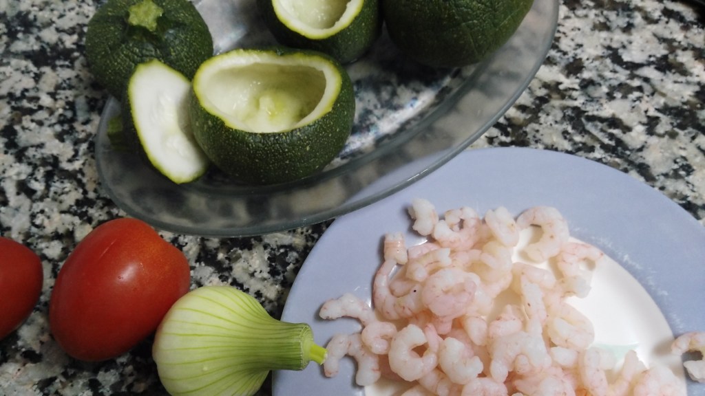 He encontrado en el supermercado unos bonitos calabacines redondos y he pensado en realizar esta receta que os explico a continuación. Calabacines rellenos de gambas.
