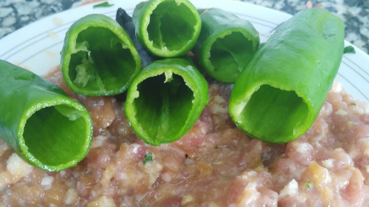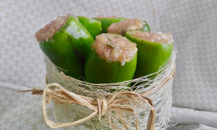 Hace unos días me han regalado unos pequeños pimientos, ideales para rellenar por su medida.