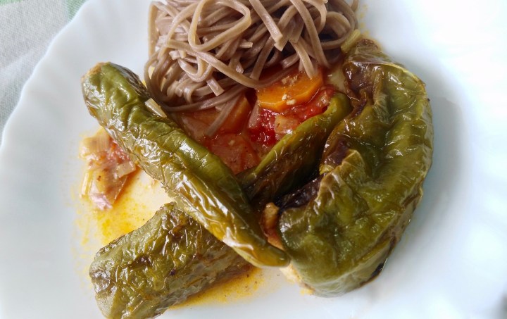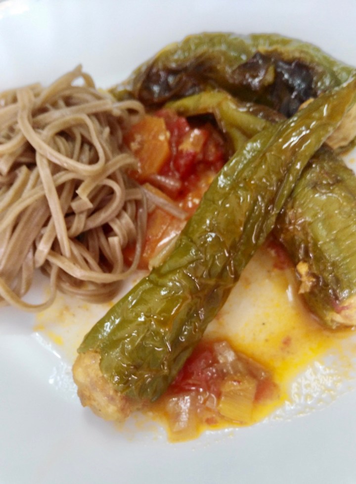 Estos pimientos los he acompañado con espaguetis integrales. Ha quedado un plato delicioso.