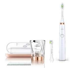 Cepillo Philips Sonicare Diamond HX9323/04, con cabezales de repuesto y estuche. Bateria iones de litio, color blanco y rosa