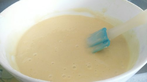 Para empezar batimos con ayuda de unas varillas los huevos con el azúcar. Añade poco a poco la leche, la pizca de sal y el aceite. Lo integras bien. Bate hasta obtener una masa brillante y homogénea la harina y la levadura.