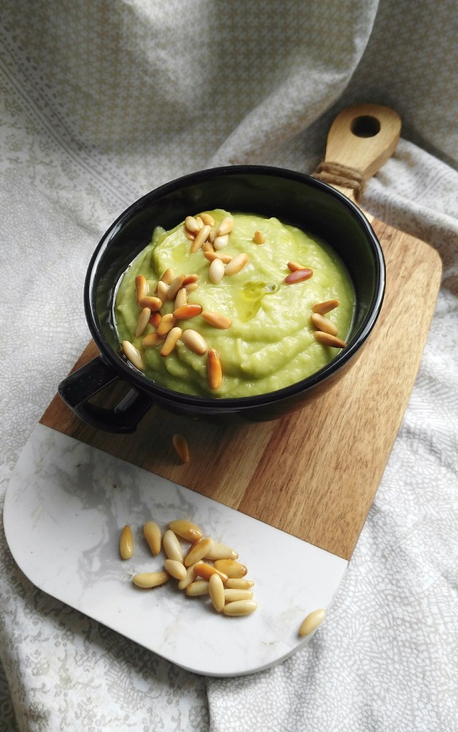Hoy he elaborado una sabrosa crema, que tanto la puedes servir bien calentita en invierno como fresquita en verano. Crema de aguacate con alubias y piñones que comparto contigo. Una nueva receta fácil, sencilla y riquísima.