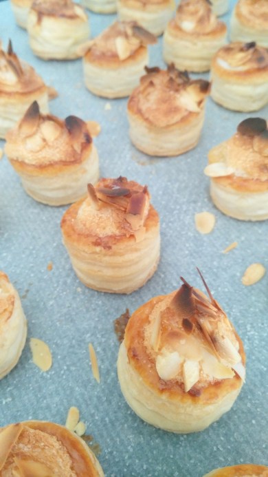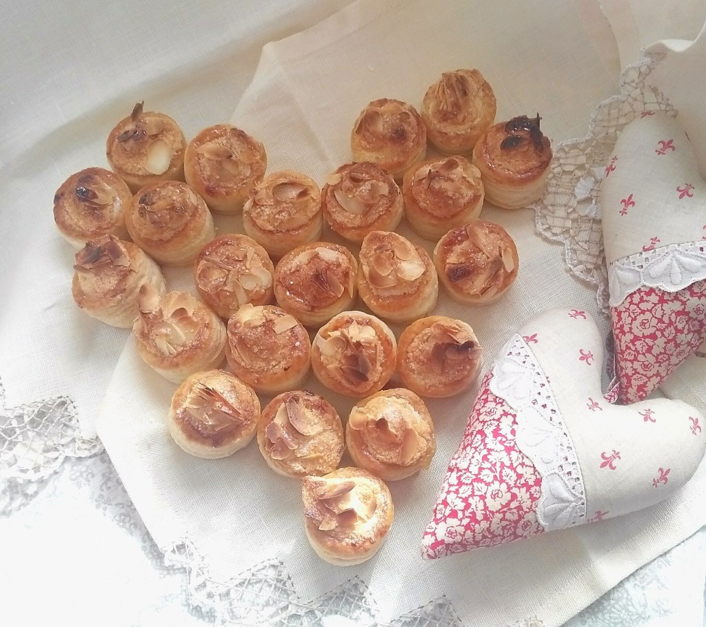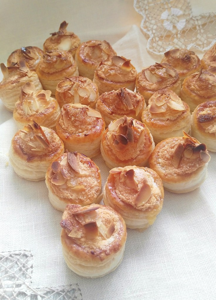 Esparcimos unas cuantes almendras laminadas sobre los volovanes y un poco de azúcar.