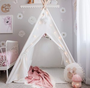 Regálale un tipi de tela, un espacio íntimo y particular para los niños, para soñar dentro de su habitación, un lugar especial para ellos solos.