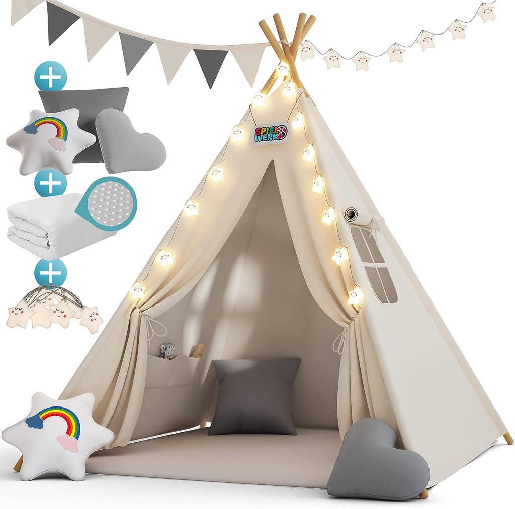 Los Tipis o tienda india infantil se han convertido en el rincón preferido de los niños. Refugio, rincón de lectura, casita de juegos, escondite, lugar secreto, donde jugar, leer, imaginar, descansar, esconder secretos, lo que ellos quieran. De normal son de tela, plegables y portátiles.
