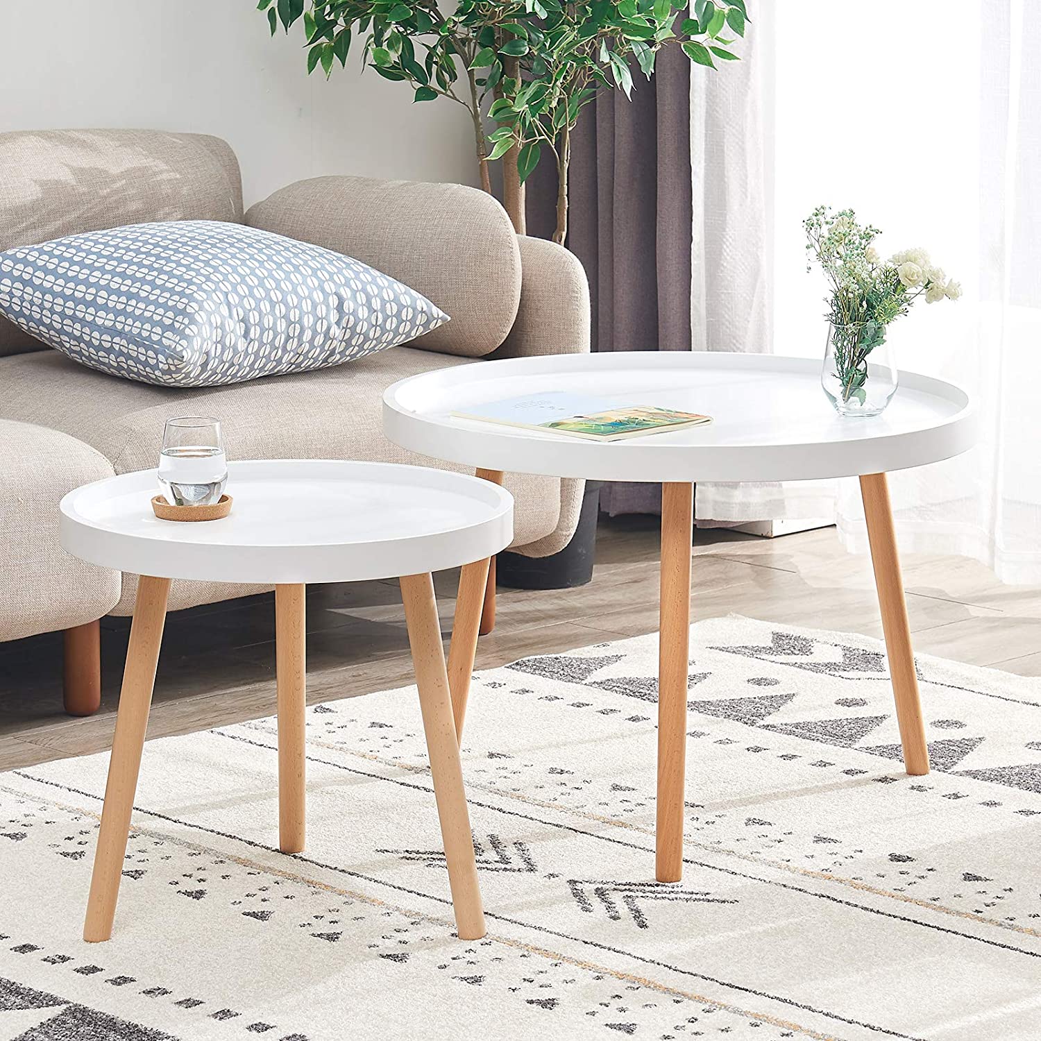 Juego de 2 Mesas de Centro Redondas blancas
