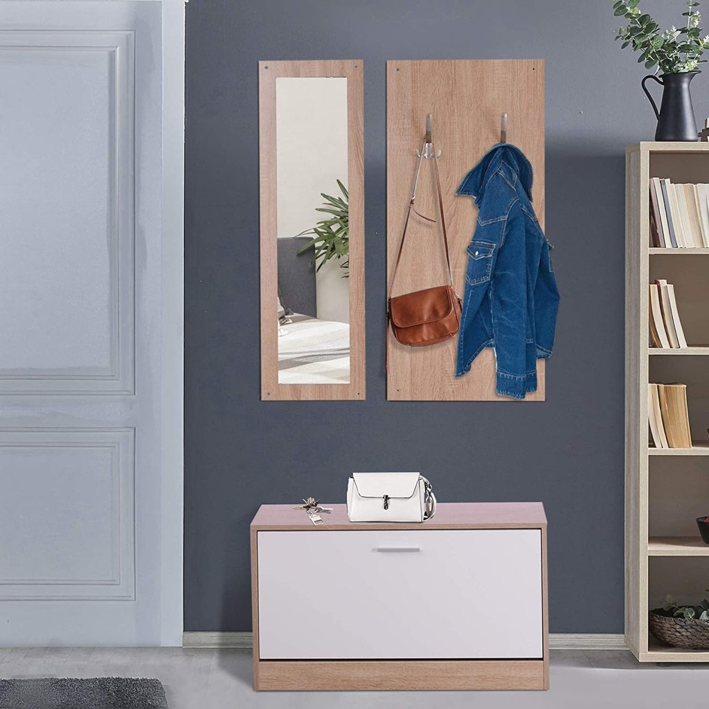 Set de 3 piezas, Perchero, Espejo, zapatero de madera