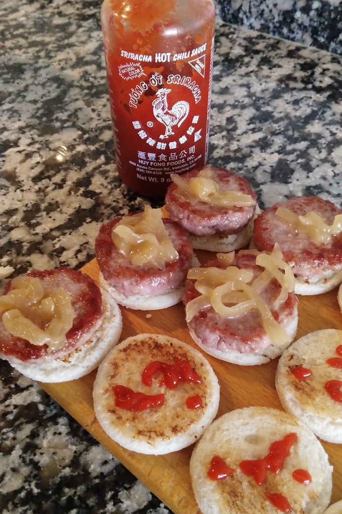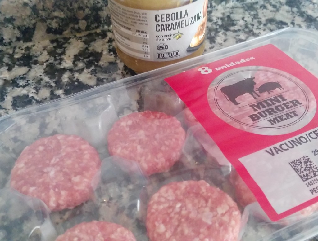 Las mini hamburguesas y la cebolla caramelizada los he comprado en el supermercado Mercadona.
