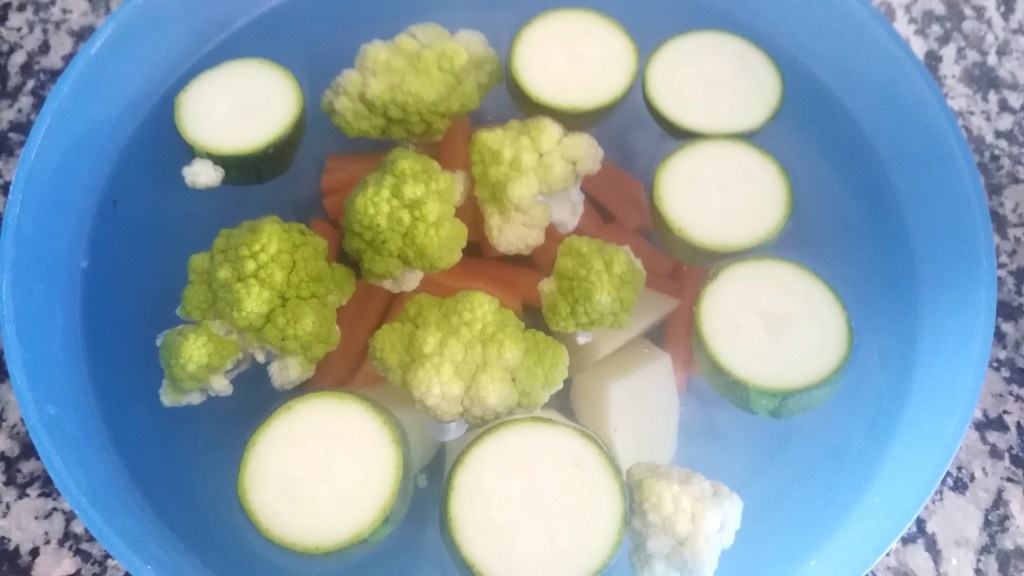 Cubrimos las verduras con agua y añadimos un poco de sal.