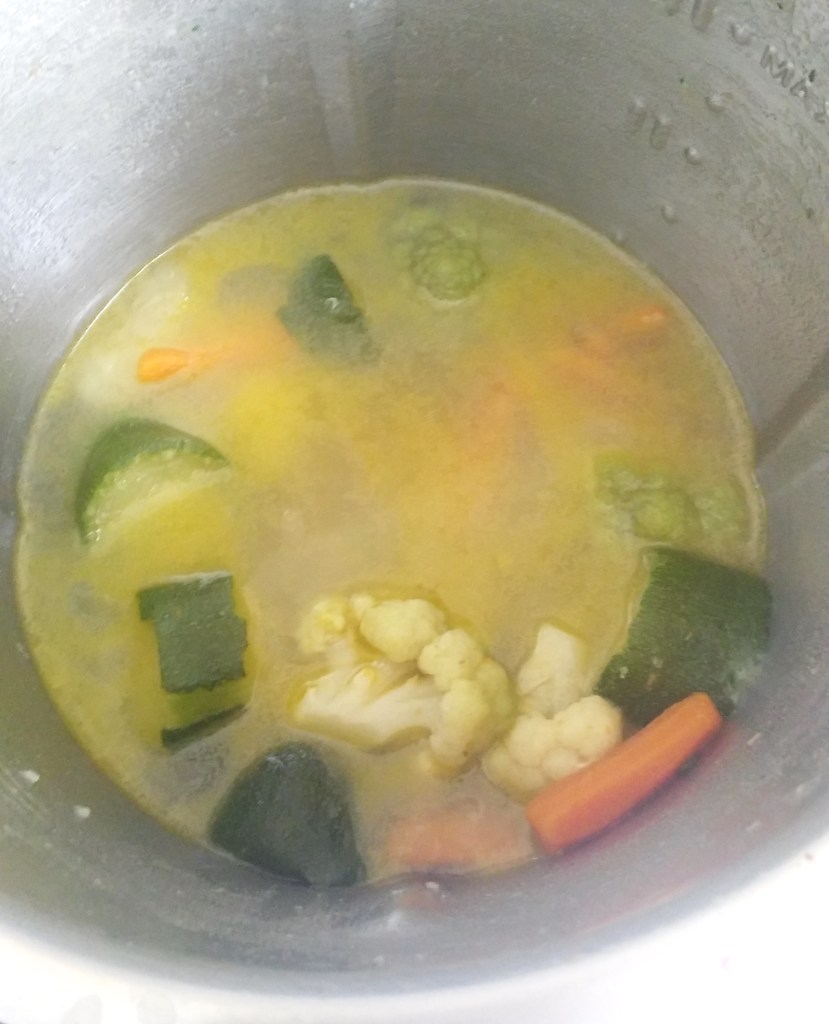 Una vez trascurrido el tiempo de cocción, retiro un poco de caldo antes de triturar. Añado un poco más si es necesario. Así busco la textura ideal.