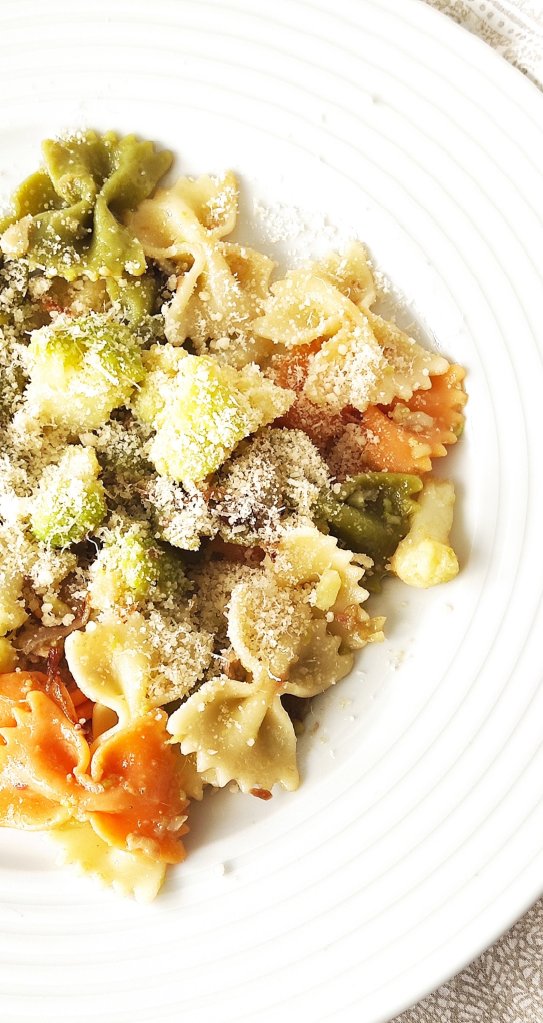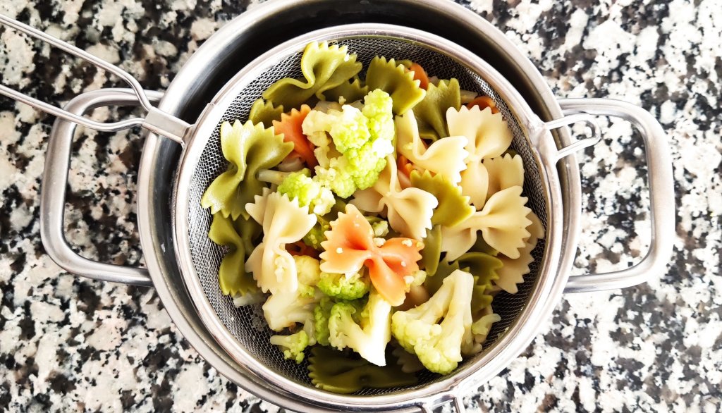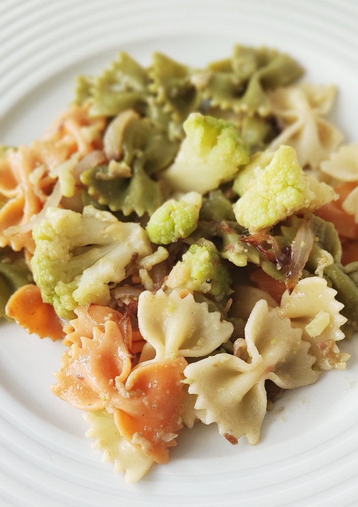 Para esta receta he elegido lacitos de colores para combinar con la coliflor, pero puedes hacer la receta con la pasta que más te guste.
