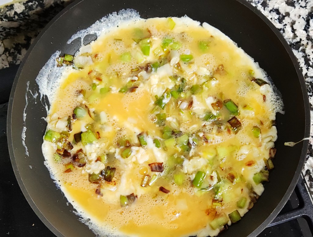 TORTILLA DE AJOS TIERNOS CON SOBRASADA Y QUESO