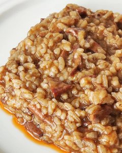 Arroz meloso con calamares en su tinta