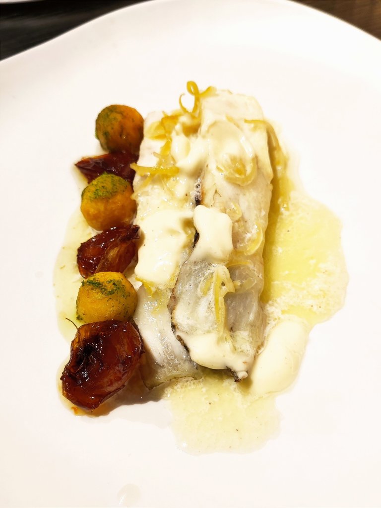Rodaballo a la «beurre blanc», cebollita francesa y limón confitado
