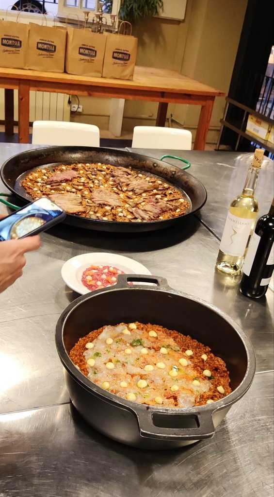 Nos lo pasamos genial. Borja nos dio las instrucciones para poder preparar tres tipos de arroces, el bomba, carnaroli y el extra de Montsiá.