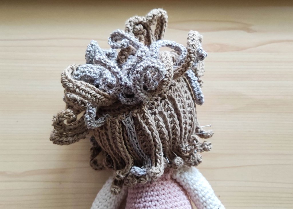 Me inspiré en el blog Rajklubicek donde explica como hacer este tipo de peluca.