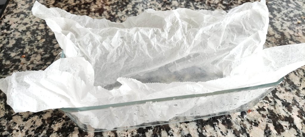 Recorta un trozo de papel de hornear, humedécelo un poco con agua y colócalo como ves en las imágenes.