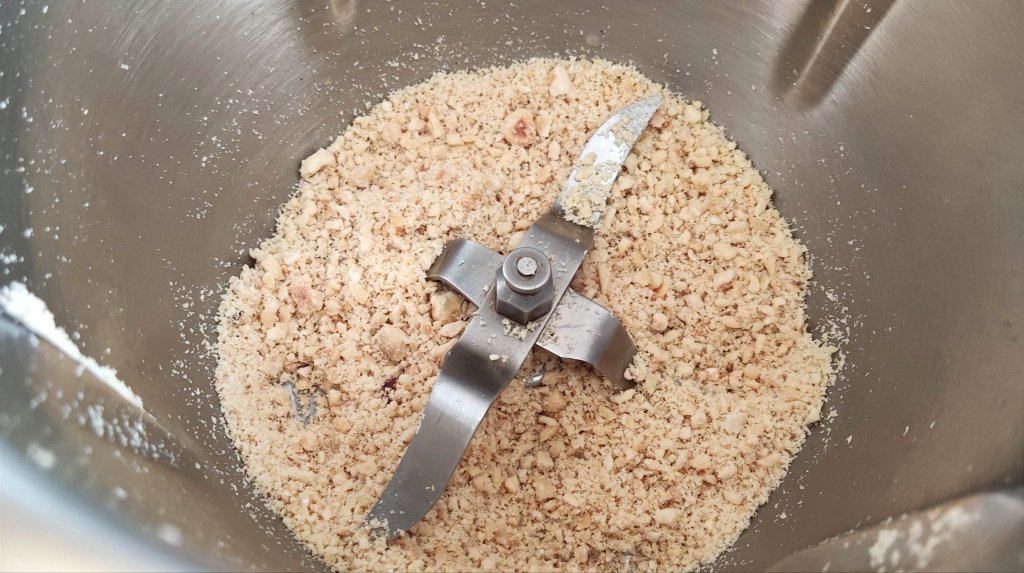Triturar 100 gr avellanas 7 seg. Vel 7 y reservar.